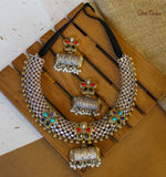 Oxidised Silver and Gold plated metal, Multicolour gemstones in a flower pattern , royal touch.