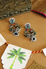 Be bold and radiant with Basant baali, an Oxidised Silver and Gold-Plated earring set featuring a pearl closure and radiant stones. Perfect for adding a touch of tradition to your outfit.