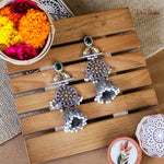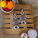 Elevate your elegance with the Ratna Jhumkha, featuring oxidized silver and gold-plated accents that create a striking contrast. The pearl closure adds a touch of classic sophistication, while vibrant yellow gemstones bring a lively sparkle. This expertly crafted piece promises to enhance your ensemble with timeless charm and radiant beauty.