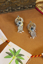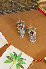 Dance with delight in these Taal mel earrings! Oxidised silver and gold-plated with radiant stones, these earrings are perfect for adding a touch of glamour to your traditional outfits. The pearl closure adds a touch of elegance to your look. Get ready to shine with these statement earrings!