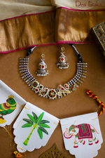 Oxidised Silver and Gold-plated metal, Radiant gemstones, Antique Gold Finish.