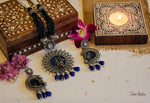 Get ready to embrace your inner rebel with this funky necklace featuring oxidized silver-plated metal and a mix of colorful beads. Don't be afraid to add a bit of edge to your style with this unique piece.