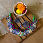 Dazzle your neckline with Vilandi Stone Necklace - a dazzling mix of oxidized silver, vibrant stones, and woven threads. Get ready to turn heads and add some serious shine to your style game!