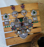 Oxidised Silver-plated metal, Vibrant colourful gemstones, Antique touch Finish.