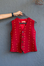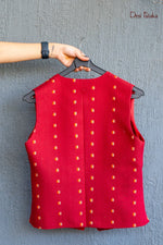 Inspired by rich Indian culture and the slight touch of modernization, the gulnaar vest has been crafted from handwoven jamdani fabric. Jamdani fabric is originated in Bengal. Jamdani is a handloom product and is considered one of the finest varieties of muslin. It is a perfect blend of comfort and style, crafted from soft, breathable fabric. This vest coat is ideal for layering, offering a polished yet casual look. Its natural texture ensures year-round comfort, while clean lines and a tailored fit make it suitable for both formal and everyday wear.