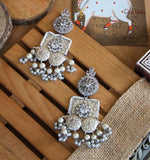 Silver-Plated Oxidised metal, Radiant gemstones, pearl finish, antique touch. Perfect for your navratri outfits.